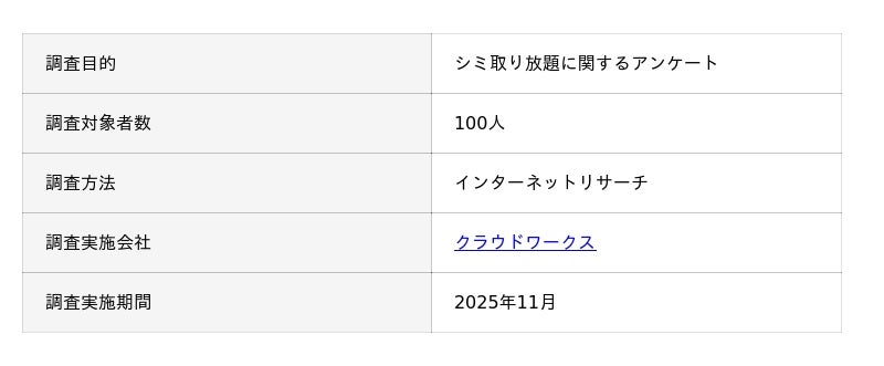 株式会社ゼロアクセル(本社:東京都千代田区、代表取締役:大福裕貴、以下「ゼロアクセル」)は、自社運営サイト『グロウナビ』にてシミ取り放題についてのアンケート調査を行いました。