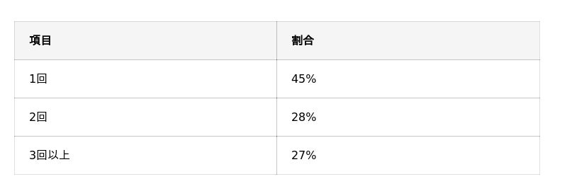 調査の結果、施術を受けた回数は「1回」が最も多く、45%にのぼりました。