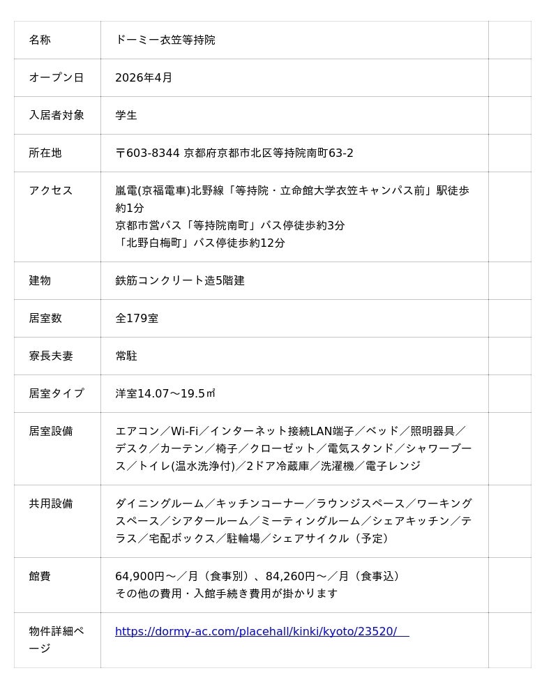 「マンションの独立性」×「寮のコミュニティ」を両立した“フルリノベ”の学生寮が誕生!学生寮『ドーミー衣笠等持院』2026年4月オープン