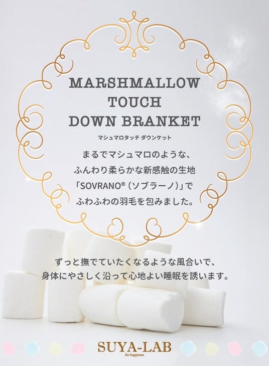 【昭和西川】まるでマシュマロみたい!ふわふわ感で快適な素材、『ソブラーノ(R)』使用の羽毛肌掛けふとんがスヤラボより登場!