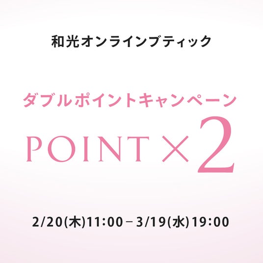 オンラインブティック限定 ダブルポイントキャンペーン2月20日(木)11:00~3月19日(水)19:00の期間限定で、オンラインブティックでのお買物にて、通常の2倍(お買上げ金額の2%)のポイントを進呈いたします。