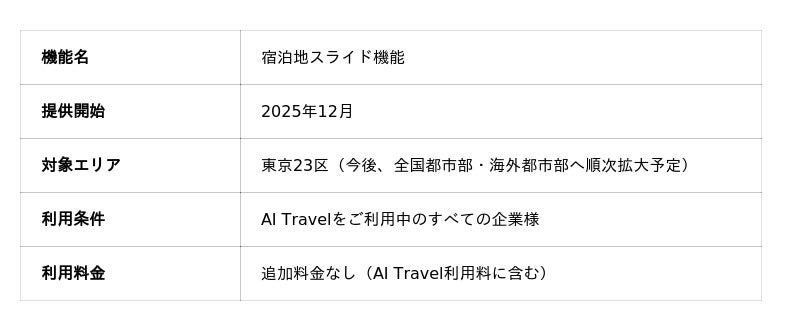 ── 高すぎて諦める前に、AIが出張の選択肢を拡張させる「宿泊地スライド」機能リリース