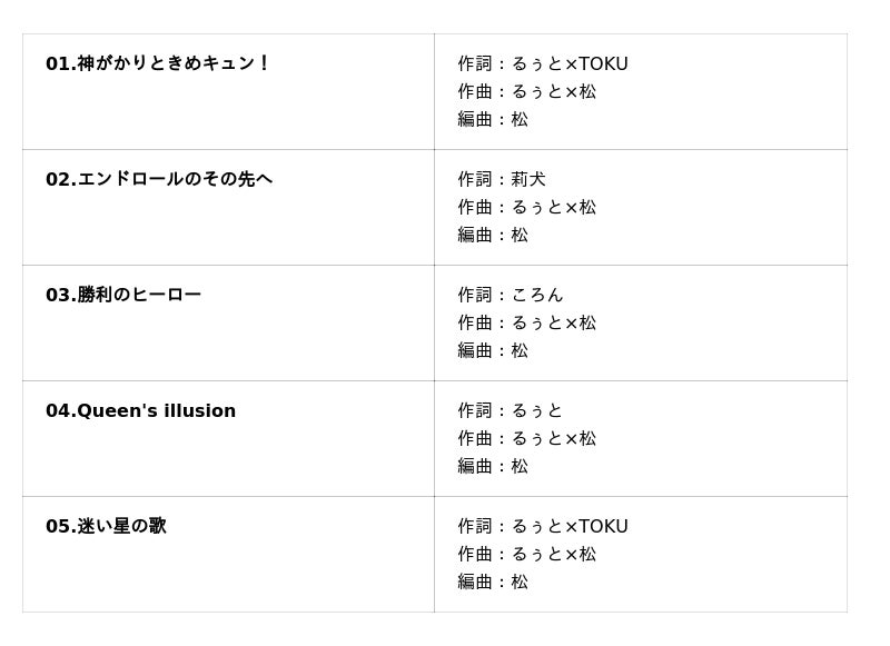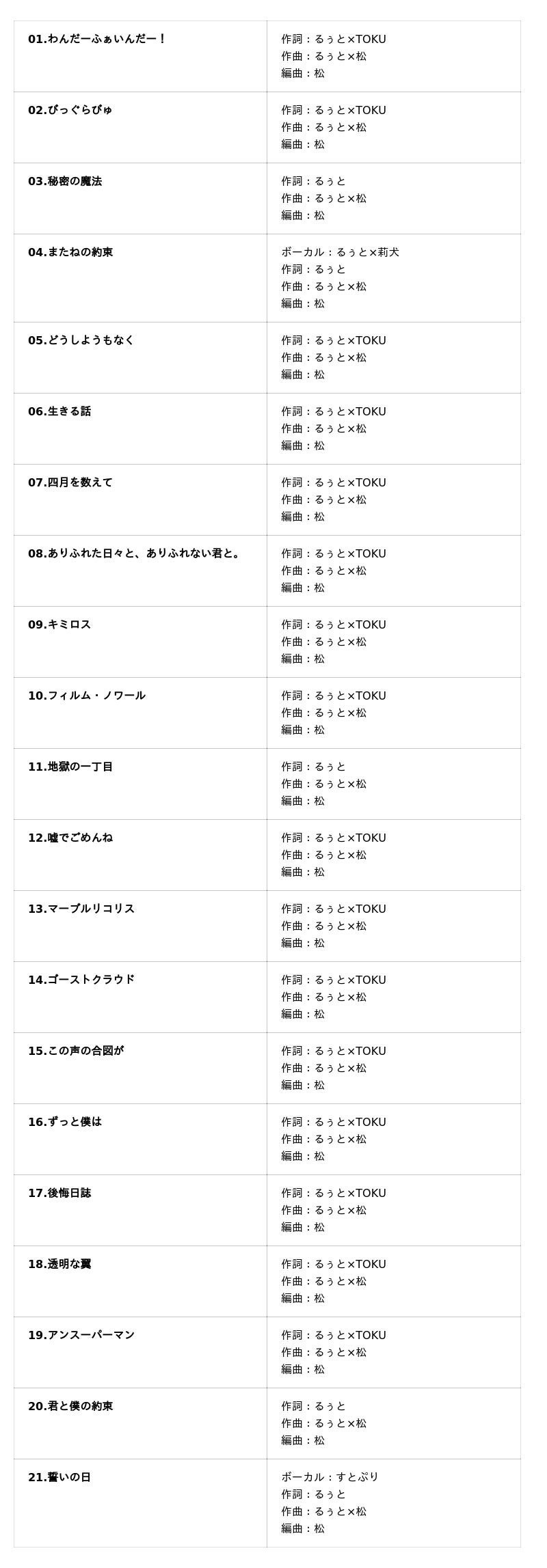 ■「るぅと」2ndフルアルバム『君と僕の約束』収録曲一覧
