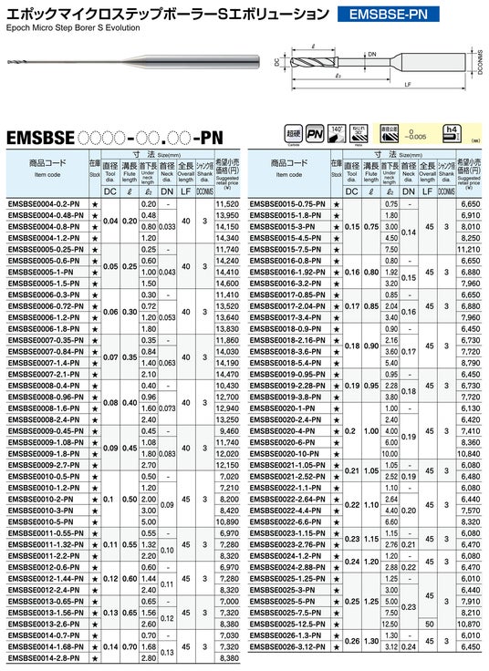 微細超深穴加工用ドリル エポックマイクロステップボーラーSエボリューション「EMSBSE-PN」 2025年12月22日 新発売