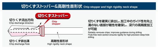 弊社は微細深穴の切削加工において、それまでのドリル設計の常識を覆す独自の切りくず排出機構を持つエポックマイクロステップボーラーS「EMSBS-TH」を2010年に発売し、採用されたお客様から好評を頂いておりました。一方、切削による穴加工はドリル径で加工穴サイズが決定されるため、微細穴領域においては一層のサイズ拡大を望まれる声が寄せられておりました。