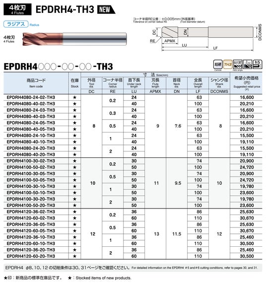 高硬度鋼加工用 4枚刃ラジアスエンドミル エポックディープラジアスハード-TH3「EPDRH-TH3」 2025年12月22日 新発売