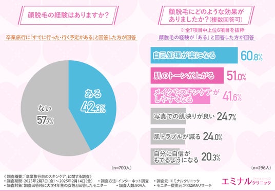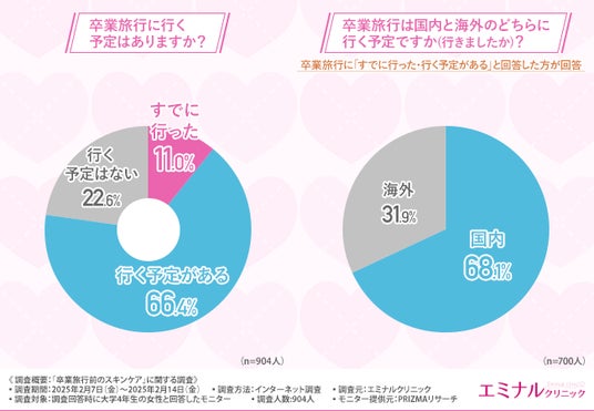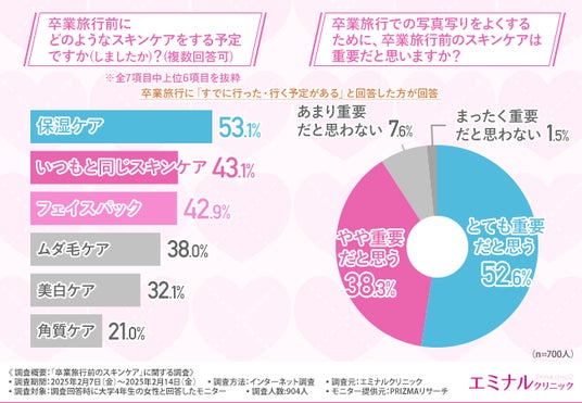 そこで今回、医療脱毛の「エミナルクリニック」は、大学4年生の女性を対象に、「卒業旅行前のスキンケア」に関する調査を実施しました。
