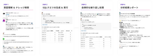 「主力商品Aのランディングページの効果は?」「春のキャンペーンページのエンゲージメント率を分析して」など、各企業独自の商品名やキャンペーン名、KPIの定義を理解した上で、適切なデータ分析を実行することが可能です。