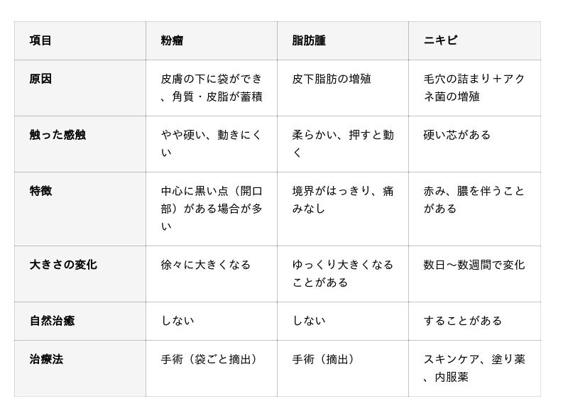 ■粉瘤・脂肪腫・ニキビの見分け方