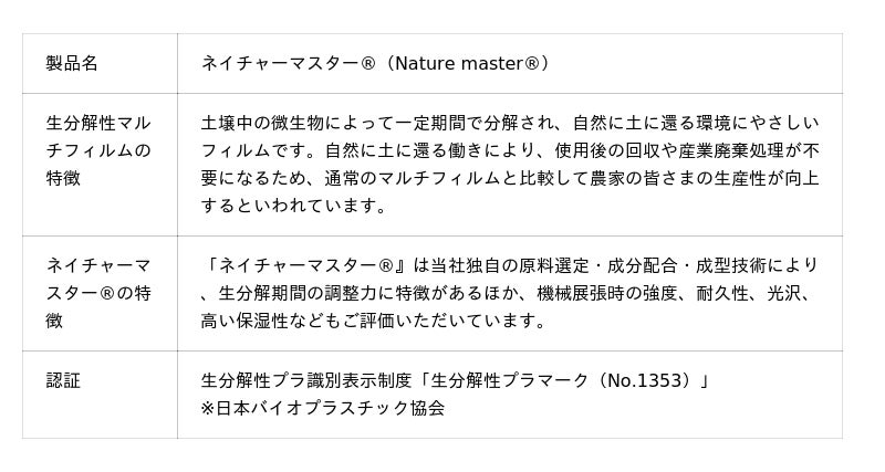 2.生分解マルチフィルム「ネイチャーマスター(R)」の製品概要