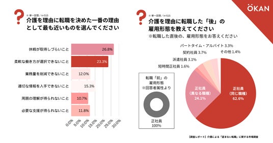 「望まない離職」を生まない組織づくりを支援する株式会社OKAN(本社:東京都豊島区、代表取締役:沢木恵太、以下OKAN)は、5年以内に介護を理由に正社員からの「望まない転職」を経験した会社員 515名を対象に、介護による「望まない転職」に関する調査を行いました。