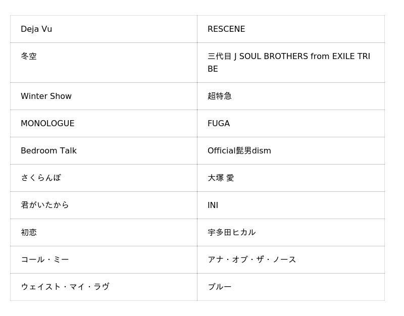 12月26日から翌年2月末までは、“冬のプレイリスト”として、寒い中でもほっと心が温まるような穏やかで居心地の良い楽曲を、“朝”・“昼”・“夜”・“深 夜”の各時間帯に合わせた選曲でお届けいたします。