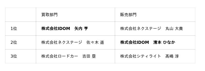 ー 「ガリバー」運営のIDOMが買取部門で優勝、販売部門で準優勝 ー