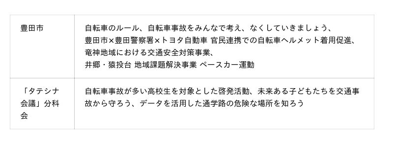 愛知県豊田市とトヨタ・モビリティ基金/「タテシナ会議」分科会、「交通安全フォーラム“安全安心に、生きる。地域と取り組むジコゼロ大作戦”」を開催します|お知らせ|一般財団法人 トヨタ・モビリティ基金