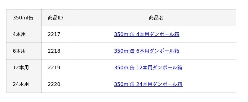 商品名:350ml缶 4本用ダンボール箱