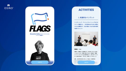 コミュニティ専用オウンドプラットフォーム「OSIRO」を提供するオシロ株式会社(本社:東京都渋谷区、代表取締役社長:杉山博一、以下 オシロ)は、スタートアップスタジオMusashino Valley を運営する株式会社MVP(本社:東京都三鷹市、代表取締役MF 伊藤羊一さん)に「OSIRO」の提供を開始。2026年1月1日(木)よりオンラインコミュニティ『FLAGS(フラッグス)』を始動します。