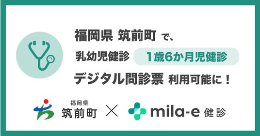 株式会社ミラボ(本社:東京都千代田区、代表取締役:谷川一也、以下「ミラボ」)は、乳幼児健診 デジタル問診票サービス「mila-e(ミライー) 健診」の福岡県 筑前町への導入が決定し、1歳6か月児健診において 運用を開始しました。