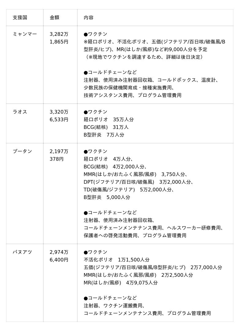 【支援国の子どもワクチン支援状況】