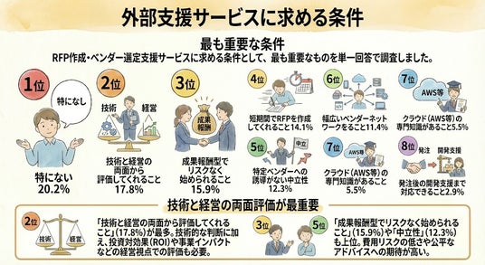 【550名調査】約6割がRFP作成に課題、54%以上が外部支援に関心 ~「RFP作成・ベンダー選定に関する実態調査」を実施~