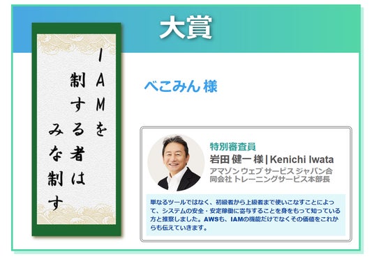 この度は、ご応募いただいた皆様、リポストで盛り上げにご協力いただいた皆様、そして特別審査員としてご参加いただいたAWSジャパンのトレーニングサービス本部長の岩田様をはじめ、ゲスト審査員として参画いただいた22名のAWS専門家の皆様に心より感謝申し上げます。