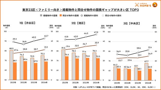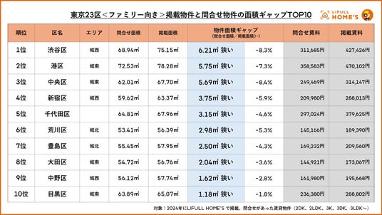 <ファミリー向き>掲載物件と問合せ物件の面積ギャップ1位は渋谷区