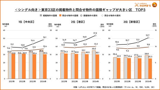 事業を通して社会課題解決に取り組む、株式会社LIFULL(ライフル)(本社:東京都千代田区、代表取締役社長:伊東祐司、東証プライム:2120、以下「LIFULL」)が運営する不動産・住宅情報サービス「LIFULL HOME'S」は、東京23区における賃貸物件の掲載賃料が上昇している状況を受け、住まい探しの条件の1つである「物件の広さ」に注目し、掲載物件とユーザーが実際に問合せた物件の面積ギャップを調査しました。