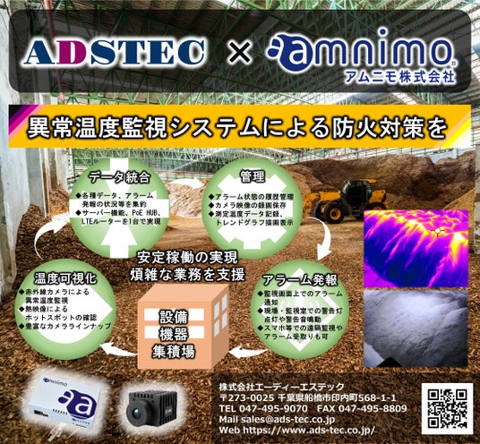 株式会社エーディーエステック(本社:千葉県船橋市、代表取締役:小嶌 勇輝)は、バイオマス発電所向けに赤外線サーモグラフィカメラを用いた異常温度監視ソリューションとして、アムニモ社との連携によるクラウドベースの統合管理システムを新たに提案しております。