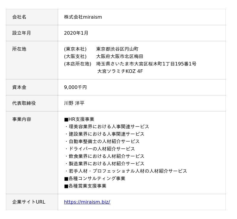 株式会社miraism 広報窓口:https://miraism.biz/contact/