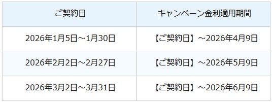 ※キャンペーン金利の適用期間は、お客様のご契約日より異なります。