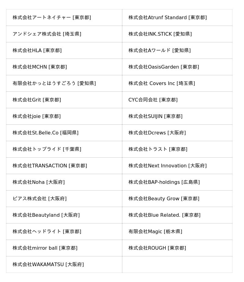 (50音順/[ ]内は本社または本店所在地)