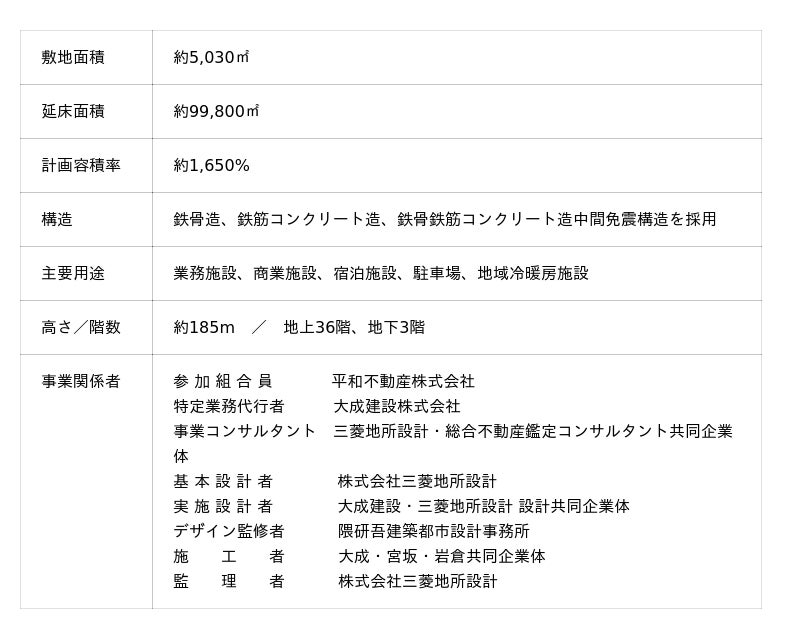 階 数:地上36階、地下3階(最高高さ:約185m)