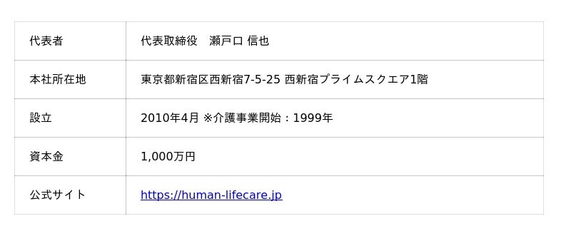 ●ヒューマンライフケア ウェブサイト:https://human-lifecare.jp