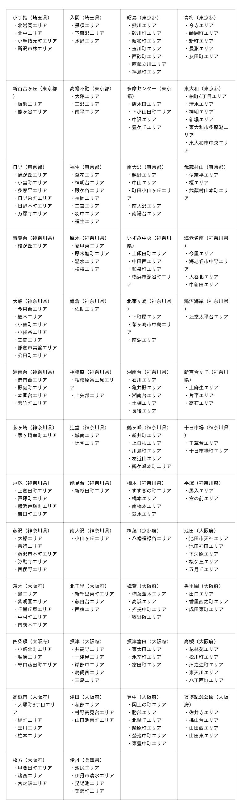 ●デリバリーサービスエリア詳細