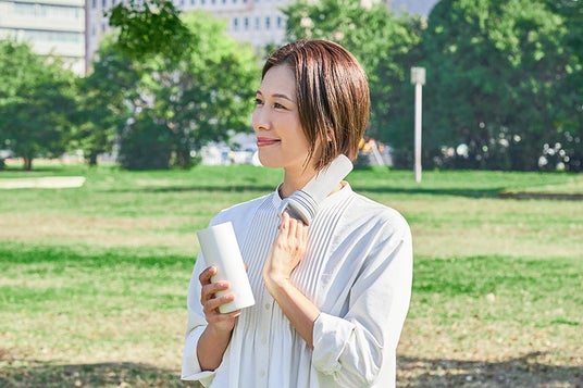 真空ステンレスボトルに内蔵した冷却芯に、冷感マフラータオルを巻き付けることで、長時間キンキンに冷えた氷タオルが何度でも楽しめる仕組み。蒸し暑い梅雨や災害級猛暑の夏を快適に乗り切るおすすめアイテム。
