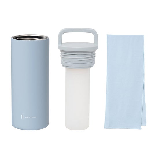 真空ステンレスボトルに内蔵した冷却芯に、付属の冷感マフラータオルを巻き付けることで、