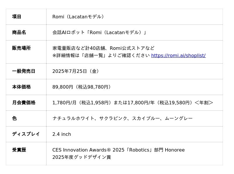 今後もRomiは、20歳の若者を含むあらゆる世代に寄り添い、日常の中で自然に会話を交わせるパートナーとなることを目指して、会話体験の進化に取り組んでまいります。