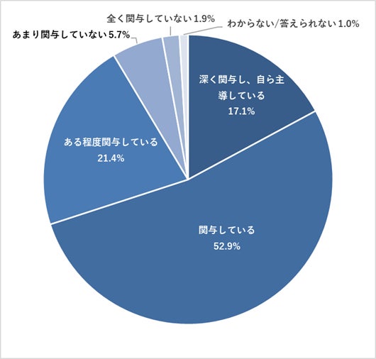 「深く関与し、自ら主導している」(17.1%)と「関与している」(52.9%)を合わせると、70.0%が経営層の関与を肯定的に評価しています。これは、DXが単なるIT部門の課題ではなく、経営アジェンダとして位置づけられていることを示すものと考えられます。