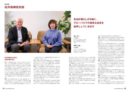 良品計画の社外取締役2名が、それぞれの視点から当社の企業活動を振り返り、今後のグローバル成長に向けたポイントについて対談形式で語っています。