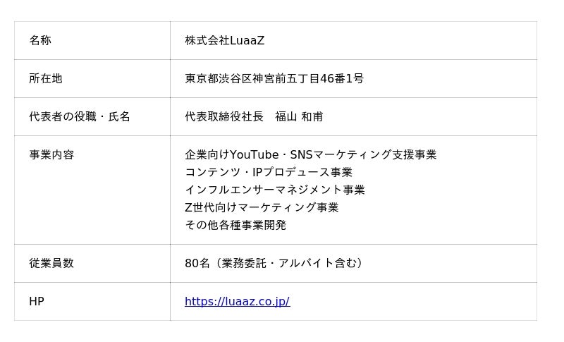 株式会社LuaaZ 広報部 info@luaaz.co.jp