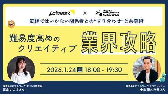 IT関連およびデジタルコンテンツの人材育成スクール[デジタルハリウッド](運営会社:デジタルハリウッド株式会社、本社/本校:東京都千代田区、代表取締役社長兼CEO:藤井雅徳、学長:杉山知之)の大阪本校では、2026年1月24日(土)にクリエイティブ業界への就職・転職を目指す未経験者や駆け出しクリエイターに向けたイベント「難易度高めのクリエイティブ業界攻略。~一筋縄ではいかない関係者との“すり合わせ“と共闘術~」を、株式会社ロフトワークと共同で開催いたします。