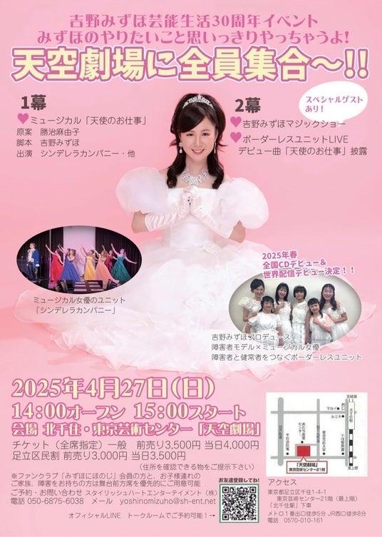 スタイリッシュハートエンターテイメント株式会社(所在地:東京都渋谷区)吉野みずほがプロデュースする、障害者と健常者をつなぐ『インクルージョンアイドル「IRIS Angel」(アイリスエンジェル)』が2025年4月「天使のお仕事」で全国CDデビュー&世界配信デビューが決定いたしました。