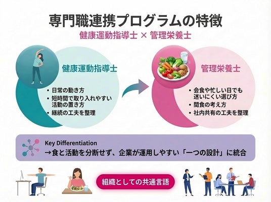 食と活動を分断せず、企業が運用しやすい「一つの設計」として整える点が特徴です。