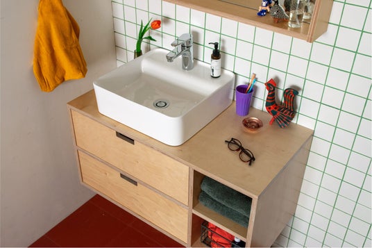 家具で人気のプライウッドを生かした、見せたくなる洗面台