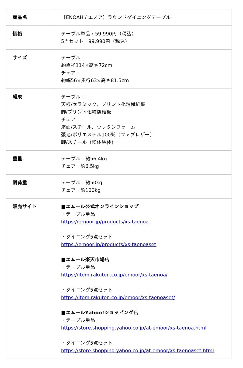 「身体に合った寝る・座る・たたむ」を提供する健康家具ブランドEMOORを展開する株式会社エムール(東京都立川市:代表取締役 高橋 幸司/以下、エムール)は、2026年1月12日よりラウンドダイニングテーブル『ENOAH(エノア)』の予約販売(1月下旬入荷予定分)を開始しました。
