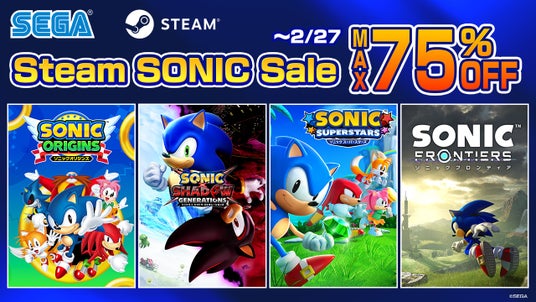 株式会社セガは、Steamにて販売中の一部PC用セガタイトルを対象とし、「ソニック」シリーズを、期間限定で特別価格にて販売する「SONIC THE HEDGEHOG シリーズセール」を開催中です。