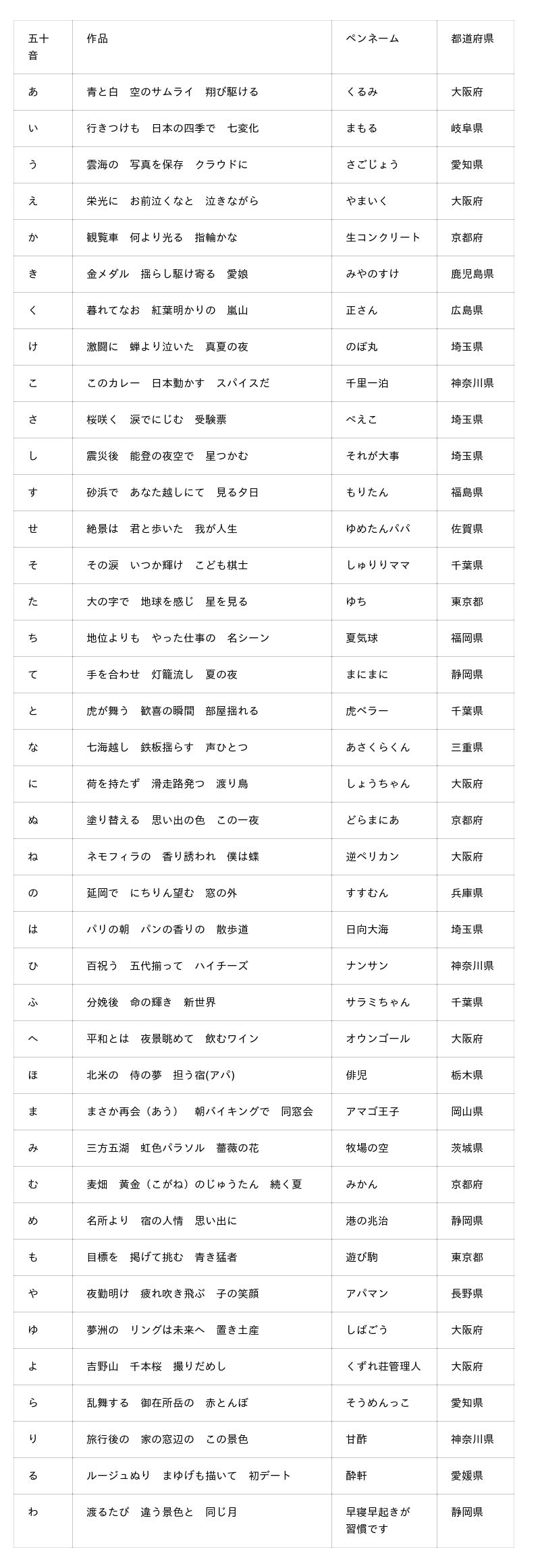 ・ペンネーム、都道府県:じゃくすい、香川県