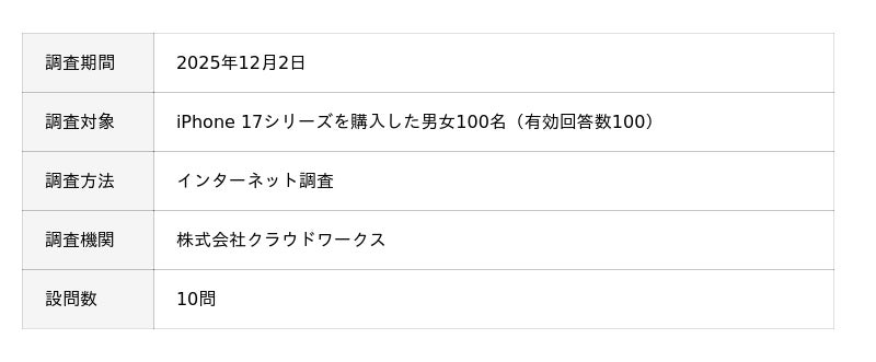 セレクトラ・ジャパン株式会社(本社:東京都渋谷区、代表取締役:グザビエ・ピノン)は、2025年9月19日に発売されたiPhone 17シリーズを購入した男女100名を対象に、iPhone 17シリーズの評価を調査しました。