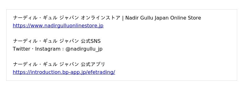 ♦ナーディル・ギュル ジャパン 公式オンラインストア
