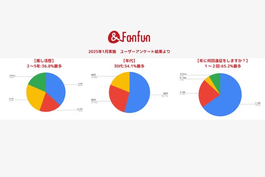 また、公式SNSで1月末に実施したユーザーアンケートでは、30代が全体の54.1%を占め、推し活歴2~5年(36.8%)が最多でした。最も注視していた遠征頻度では、年1~2回が65.2%と最も多く、3~5回(21.7%)、6~10回(4.3%)、それ以上(8.7%)という結果に。