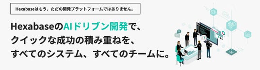 ヘキサベースは、「システム開発に関わるすべての人へ成功体験を届ける」をミッションとして、AIとクラウド技術を融合させた新たな開発モデルを提案し、法人システムの開発効率化、競争力向上へ繋がるDXの実現を支援しています。